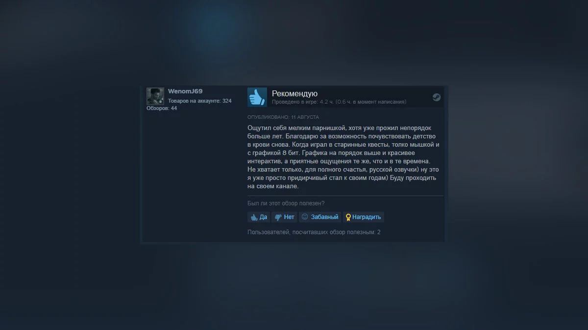 В Steam на момент написания новости у игры только положительные отзывы от геймеров.