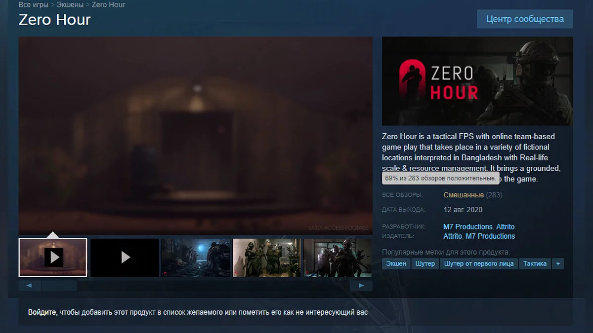 Купить Zero Hour можно в Steam со скидкой 10% (действует до 19 августа) за 260 рублей.