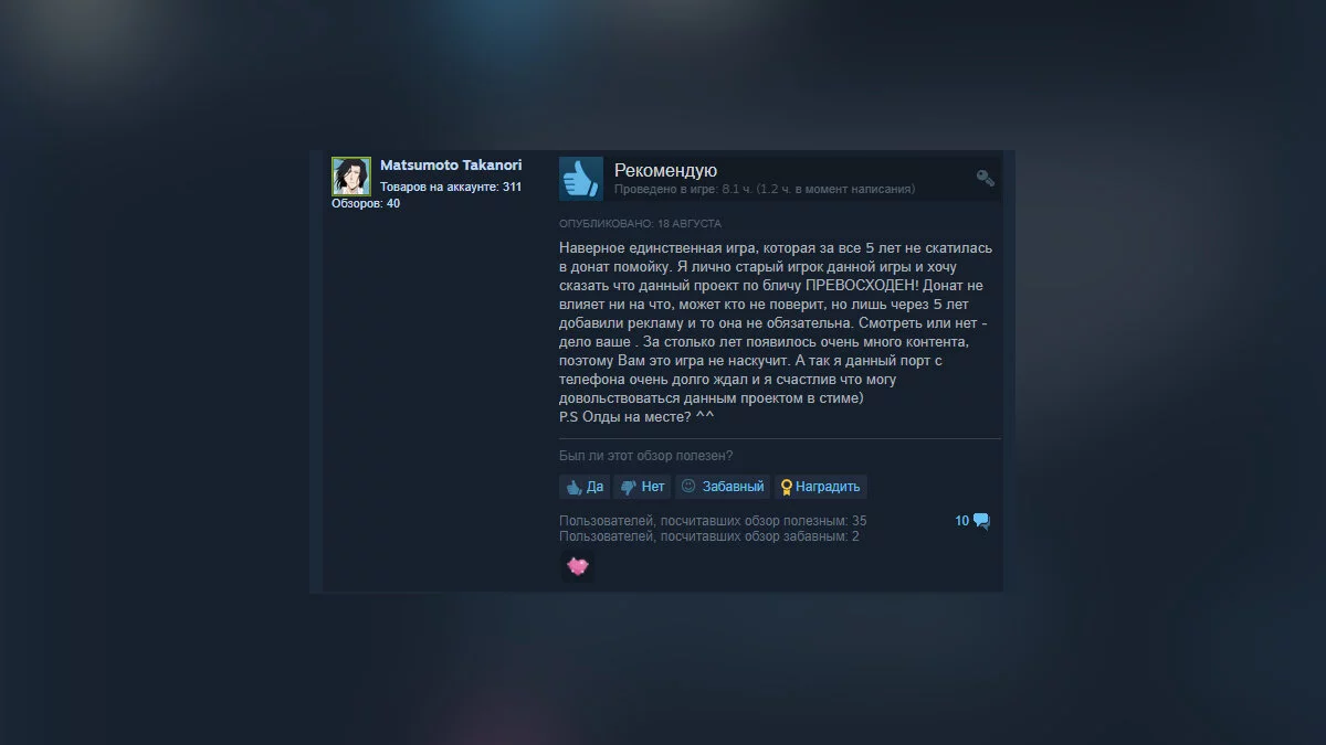 Пользовательский рейтинг игры на момент написания новости имеет 64% положительных отзывов.
