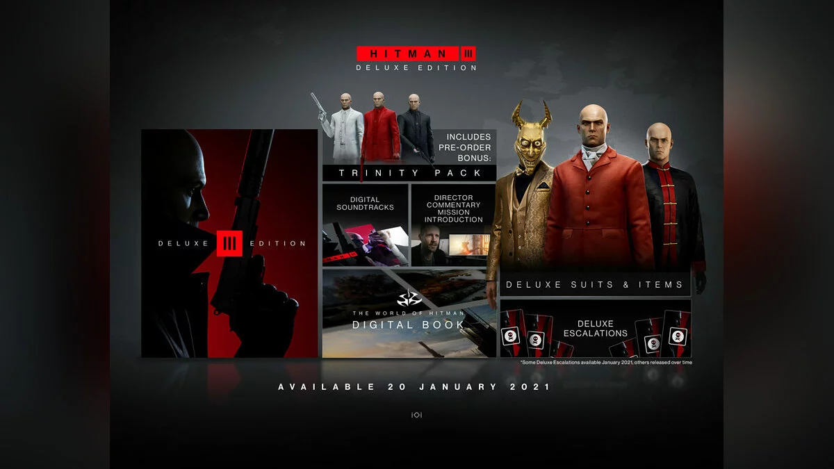 Боевик получит два издания: стандартное ($60 или 4500 рублей) и делюкс ($80 или 6000 рублей). Последнее помимо игры содержит ряд бонусов: дополнительные контракты, костюмы, предметы, а также цифровой артбук, саундтрек и режиссерские комментарии.