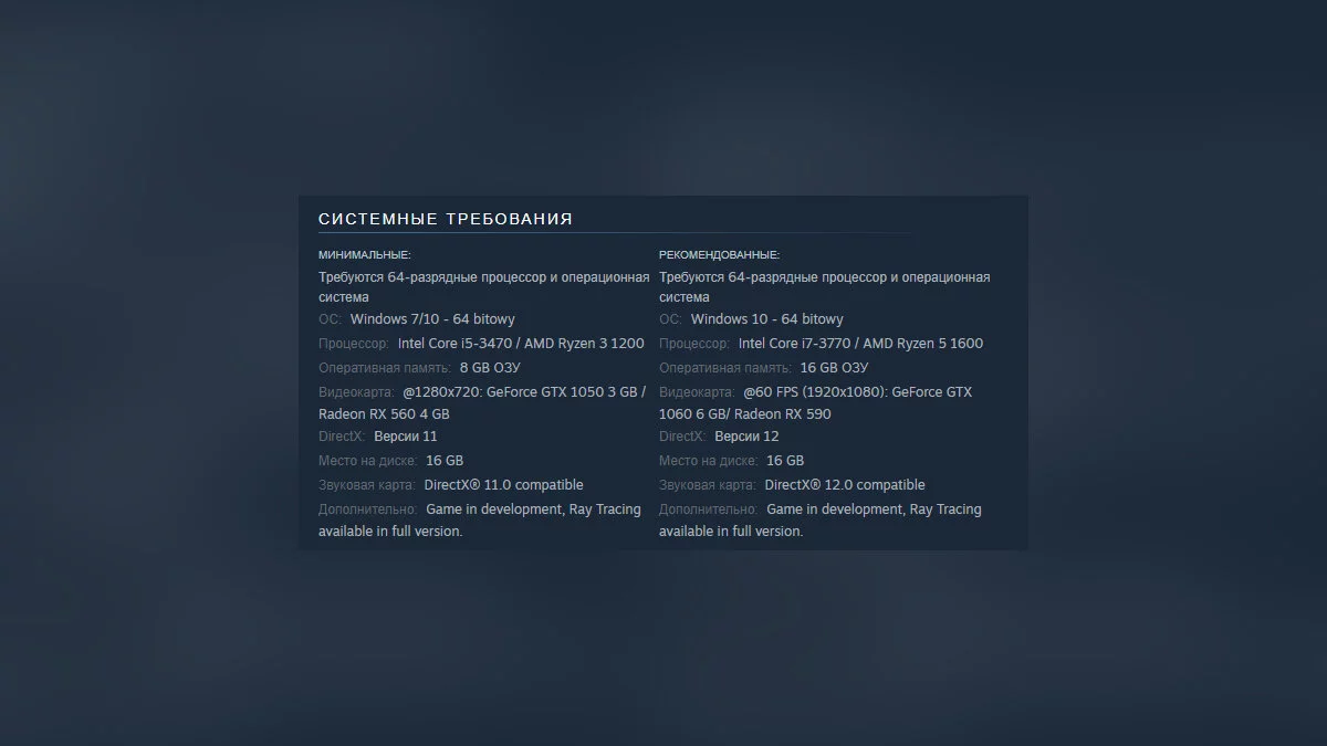 - Видеокарта: GeForce GTX 1060 6 ГБ или Radeon RX 590 (1920x1080);