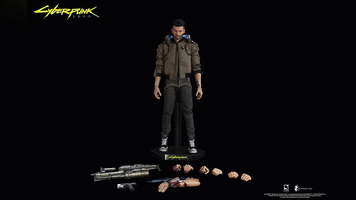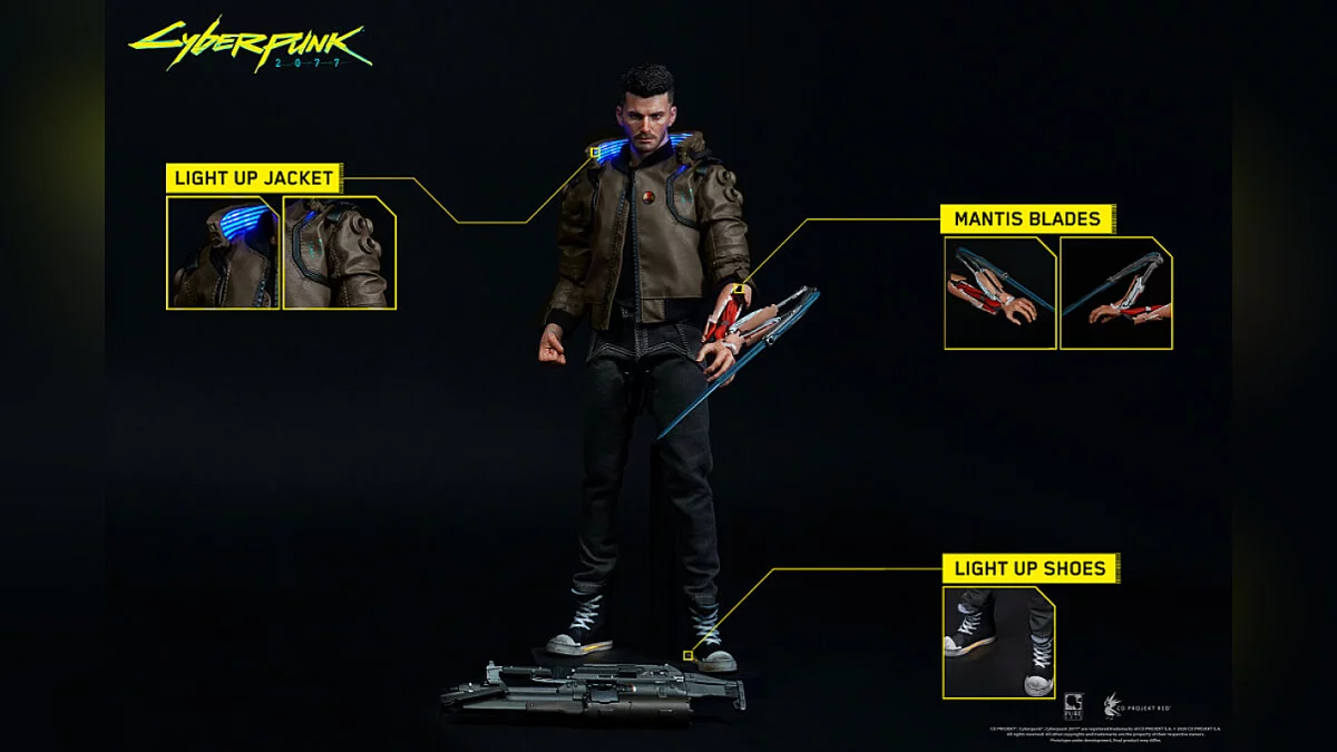 Фигурки и мотоцикл выполнены в масштабе 1/6. Есть светящиеся элементы: у Ви это воротник куртки и кеды (только у мужской версии), а у байка работают передние и задние фары. Также в наличии есть несколько дополнительных деталей вроде сменных рук и оружия.