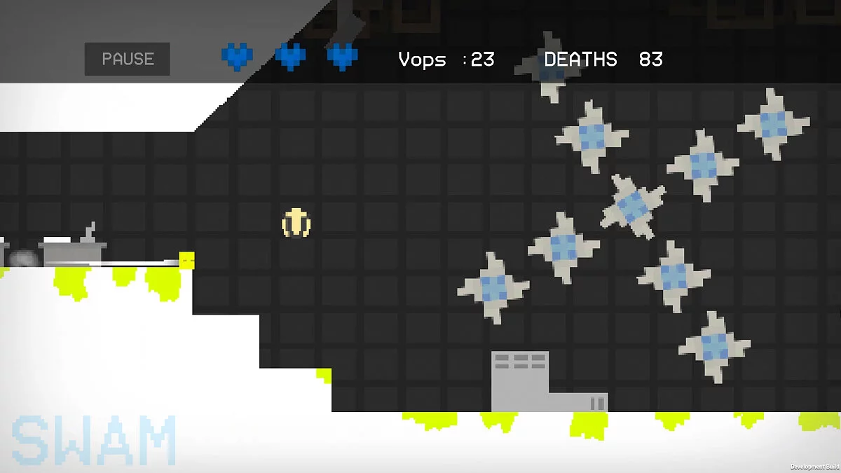 SWAM — сюжетный платформер 2016 года, отдалённо напоминающий Super Meat Boy. Управляя пиксельным квадратом, игроки должны пройти 40 уровней, чтобы в конечном итоге вырваться из тисков мамы-робота. Страница в Steam.