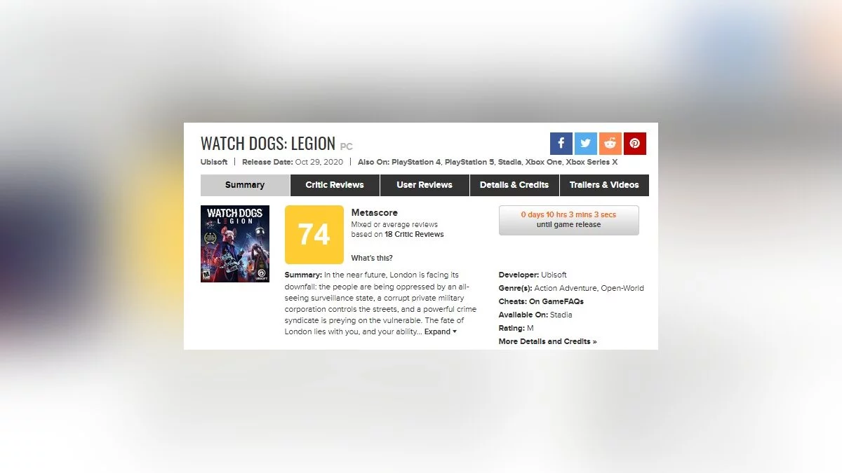 Ubisoft выпустит игру Watch Dogs: Legion уже завтра, а сегодня компания сняла эмбарго на публикации о ней. После этого в сети появились оценки и мнения критиков.