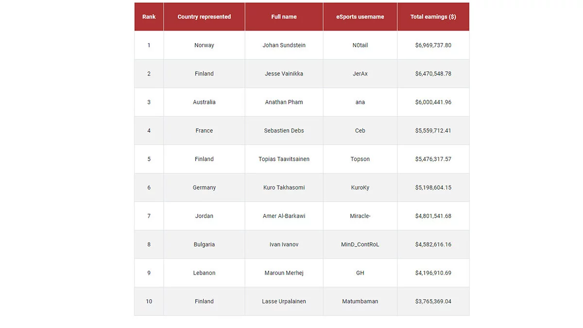 Самым успешным киберспортсменом стал норвежский игрок по Dota 2 под псевдонимом n0tail. Он заработал за свою карьеру почти 7 миллионов долларов.