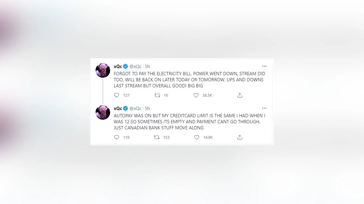 Сегодня стрим xQc неожиданно прервался, а все его зрители остались в недоумении. Оказалось, что электричество в доме стримера отключили. Об этом он рассказал в своем Twitter.