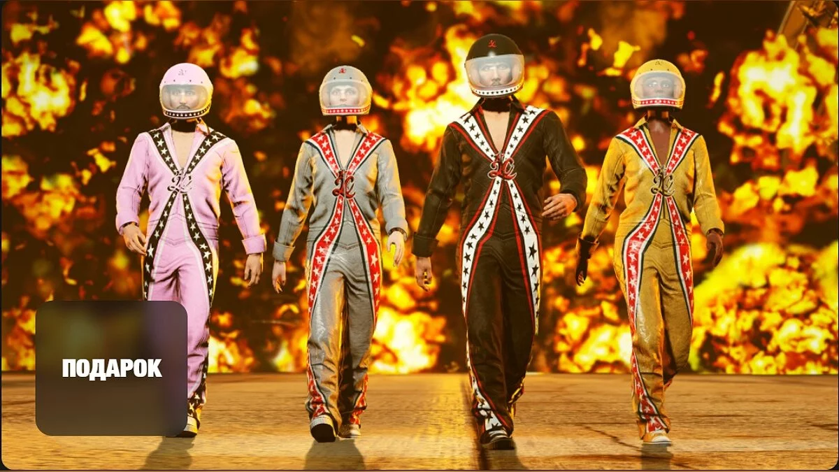Бесплатно можно получить костюмы бывшего каскадера Джока Крэнли. На этой неделе в подарок за вход в GTA Online вы получите золотой, серый, розовый и черный костюмы.
