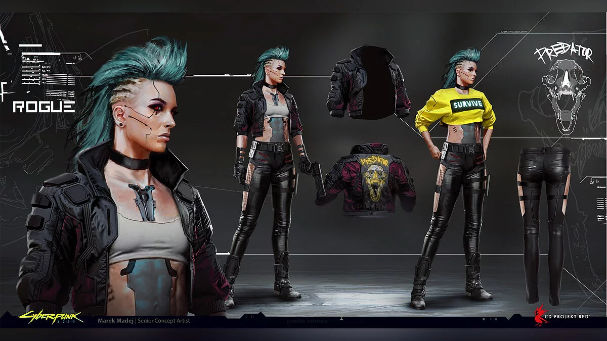 Марек Мадей (Marek Madej), старший концепт-художник из студии CD Projekt Red, опубликовал в сети новые официальные концепт-арты Бестии Амендиарес (Rogue Amendiares) из ролевой игры Cyberpunk 2077. На изображениях показаны две финальные версии персонажа — из 2020 и 2077 годов.