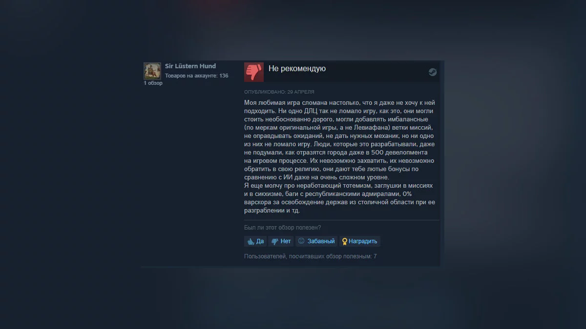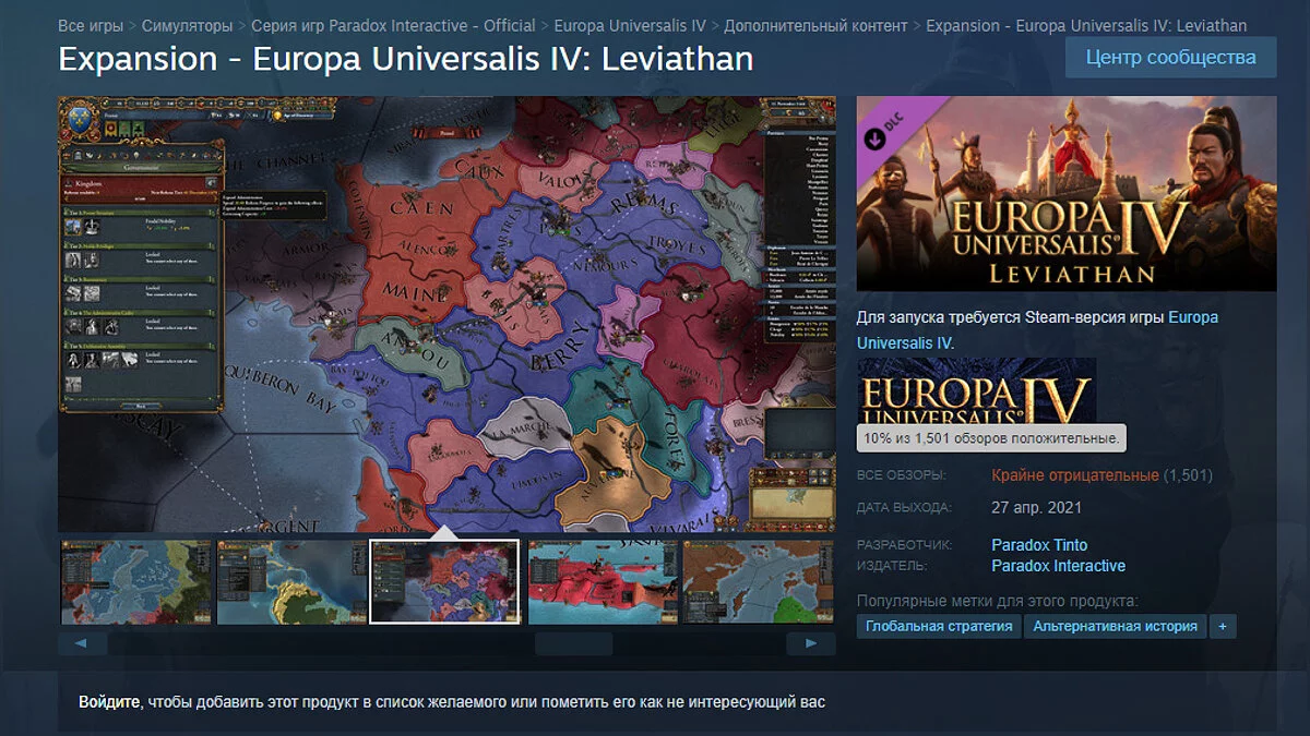 На текущий момент худшим продуктом по мнению пользователей Steam считается дополнение Leviathan для стратегии Europa Universalis 4.