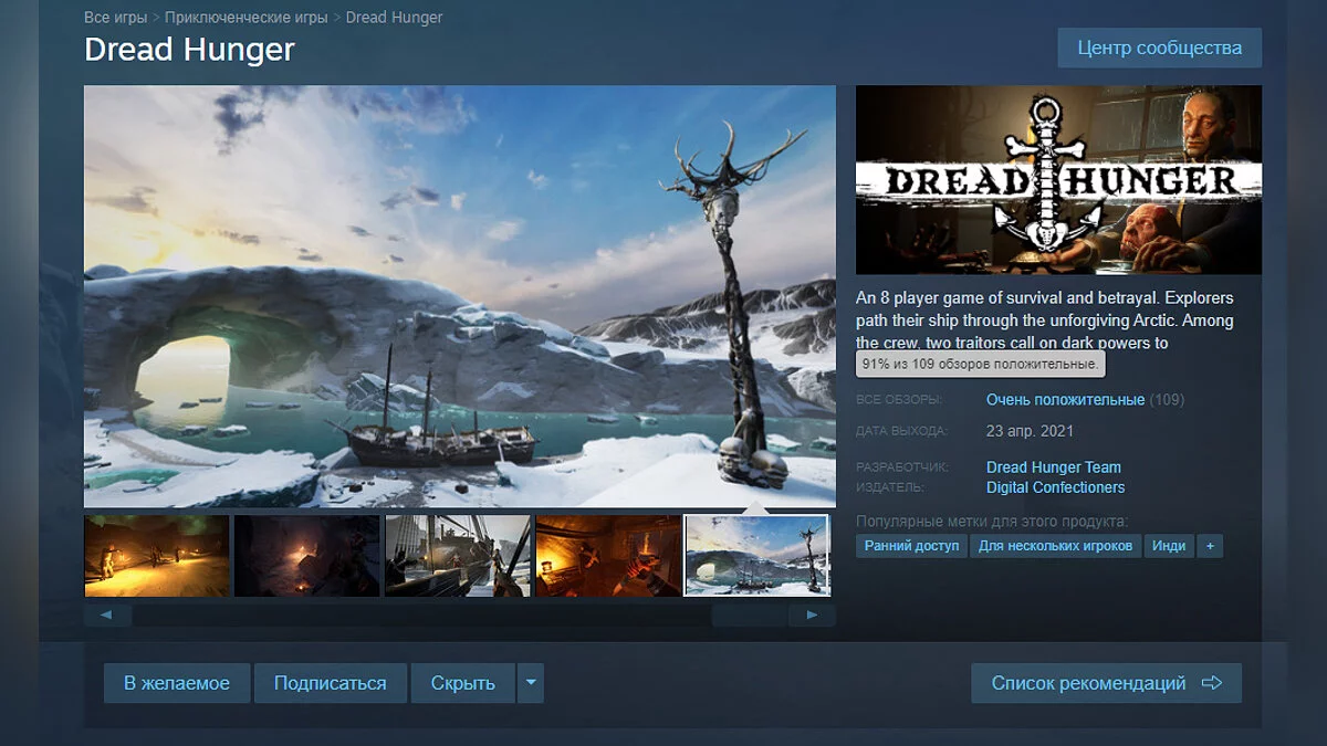 В конце апреля в раннем доступе Steam вышел онлайн-экшен с кооперативом Dread Hunger. По геймплею он похож на Among Us, но вот сеттингом выступает Арктика 1847 года. Примечательно, что на игру обратил внимание даже дизайнер оригинальной Doom, Джон Ромеро (John Romero).