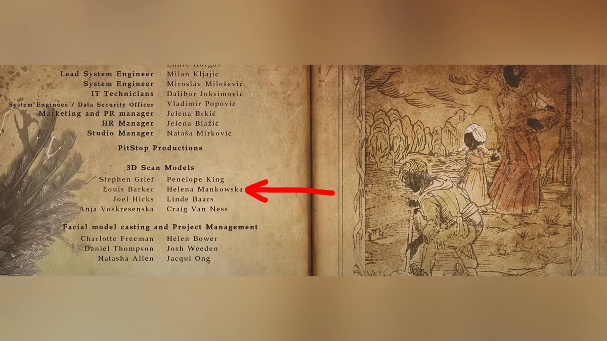 Если внимательно прочитать титры игры, ее имя всплывает во время показа всех моделей, участвовавших в 3D-сканировании.