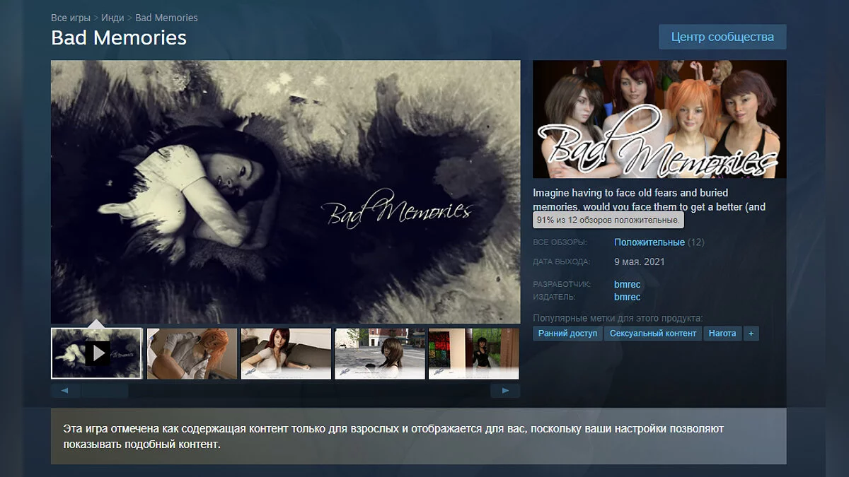 Купить Bad Memories в Steam можно за 205 рублей. Кстати, ранее мы опубликовали ТОП-10 лучших эротических игр.