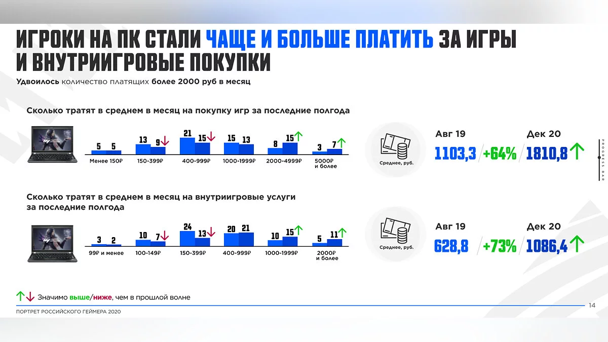 - PC-геймеры стали чаще и больше платить за игры и внутриигровые покупки (удвоилось количество платящих более 2000 руб в месяц);