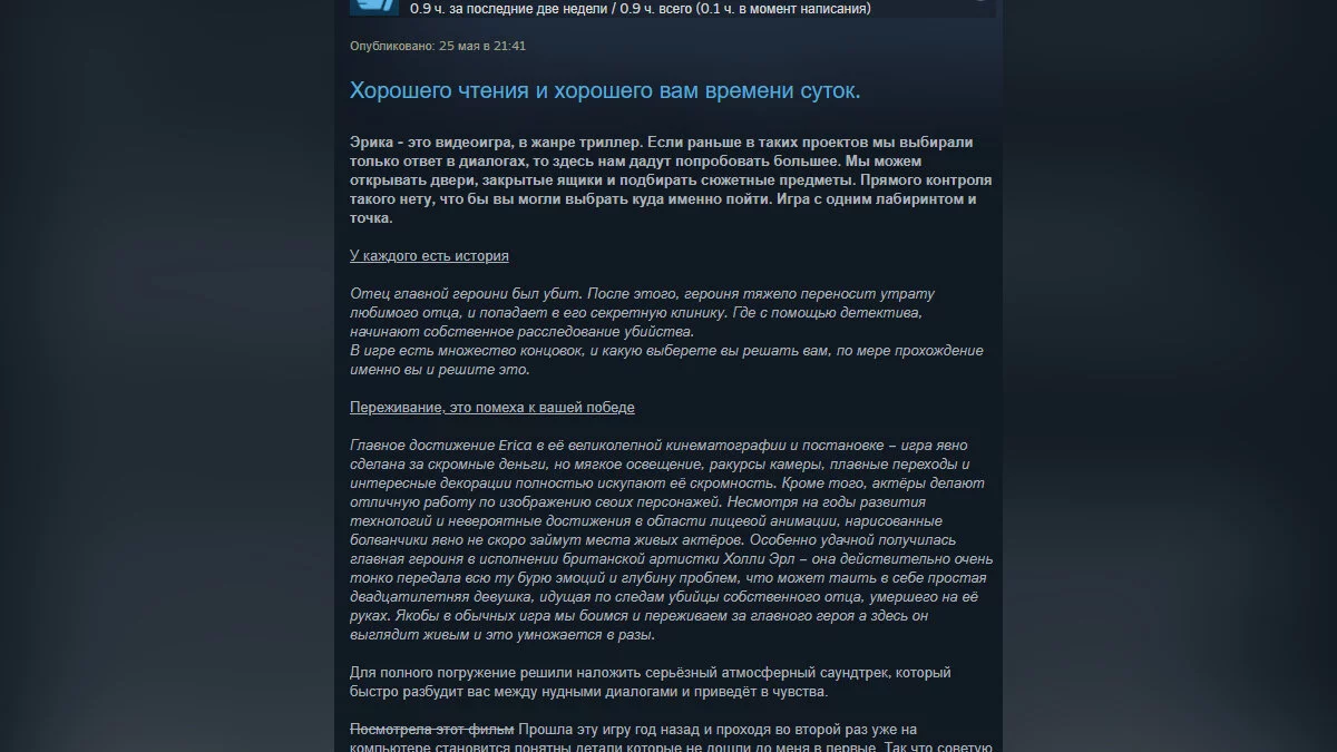 На момент написания новости, рейтинг Erica в Steam составляет 76% на основе 17 обзоров.