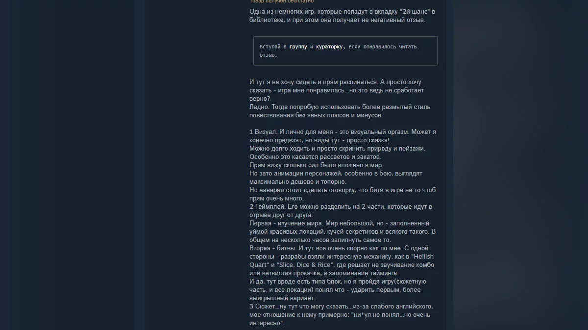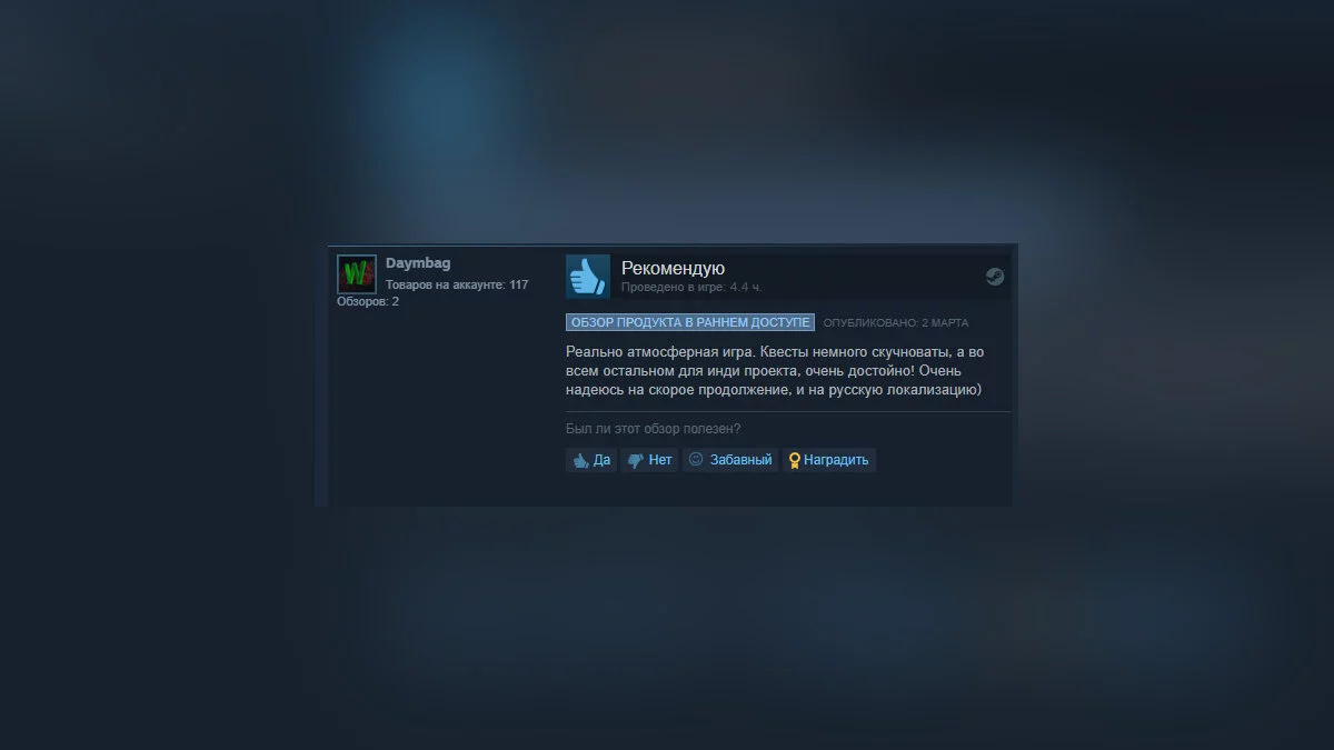 Игра получила свыше ста положительных отзывов. На момент написания новости ее рейтинг составляет 90%.