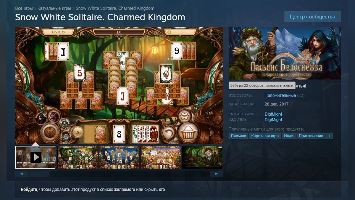 Скачать White Solitaire. Charmed Kingdom можно здесь (на IndieGala).