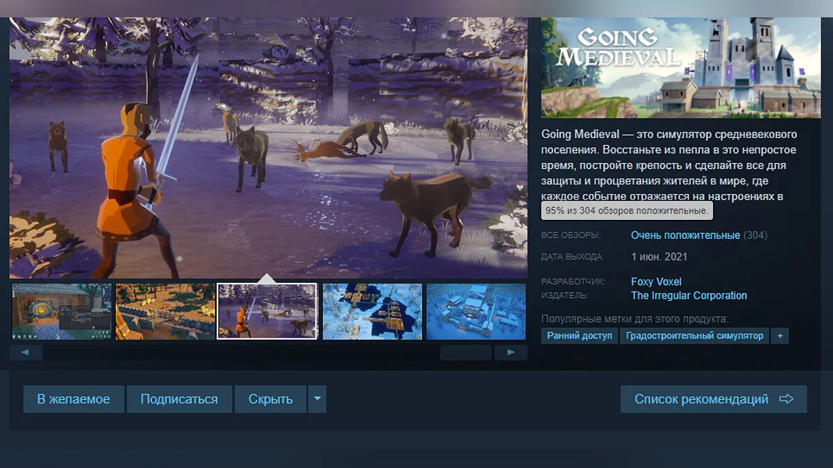 В раннем доступе Steam, GOG и Epic Games Store вышел симулятор средневековья под названием Going Medieval, который менее чем за сутки получил от геймеров сотни положительных отзывов. На момент написания новости, рейтинг игры в Steam составляет 95% на основе 304 обзоров.