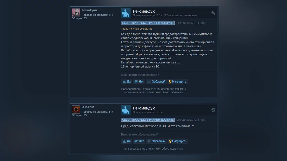 В отзывах многие геймеры сравнивают Going Medieval с RimWorld, только вместо научной фантастики сеттингом является средневековье.