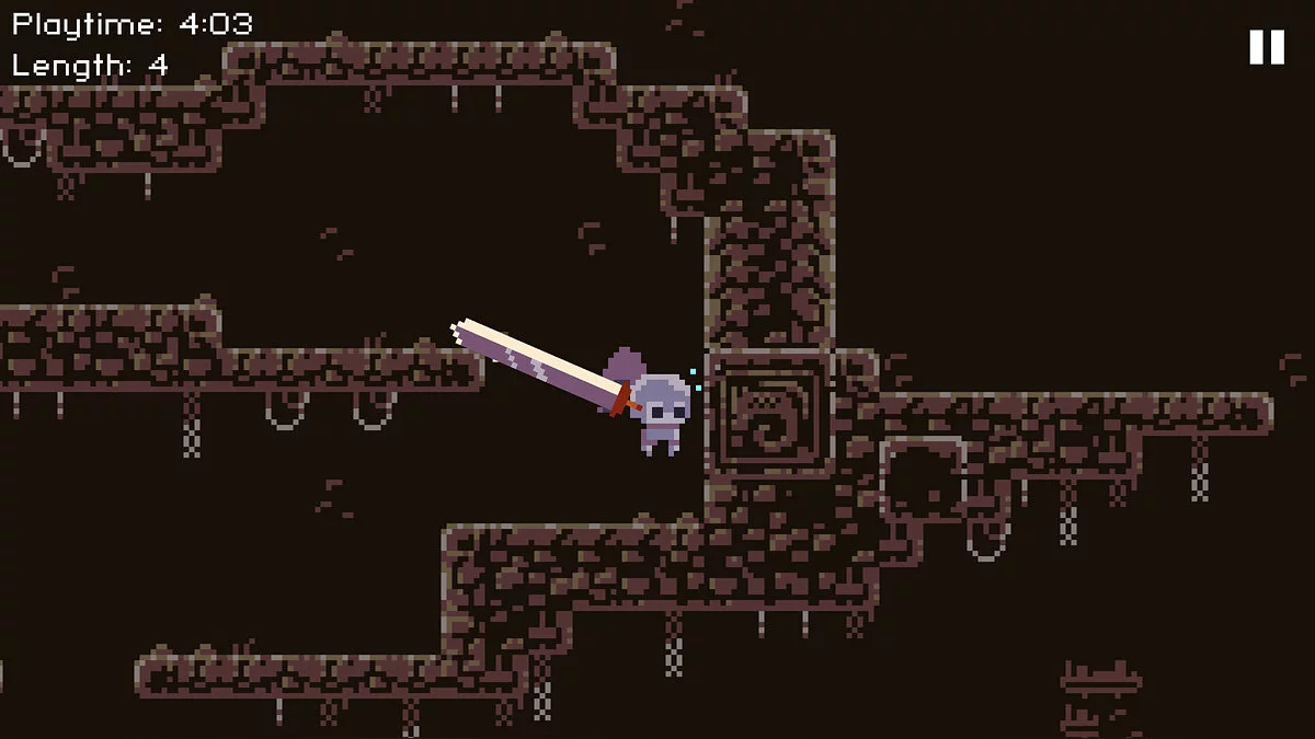 Deepest Sword представляет собой пиксельную 2D-адвенчуру про рыцаря, который отправляется к дракону, чтобы пронзить его мечом. Стоит заметить, что в игре отсутствуют прыжки, но взбираться на платформы можно с помощью огромного меча героя.