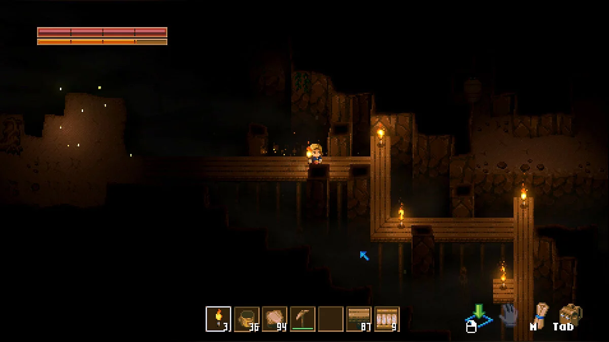 «Создайте кирку, чтобы добывать ресурсы, стройте мосты, чтобы пересечь подземные озера, а также устанавливайте факелы и разводите костры, чтобы осветить местность», — говорится в описании.