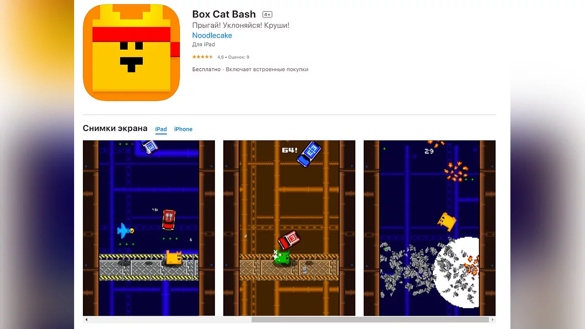 - Box Cat Bash — сайдскроллер про коробкокошку с пиксельной графикой (загрузить бесплатно);