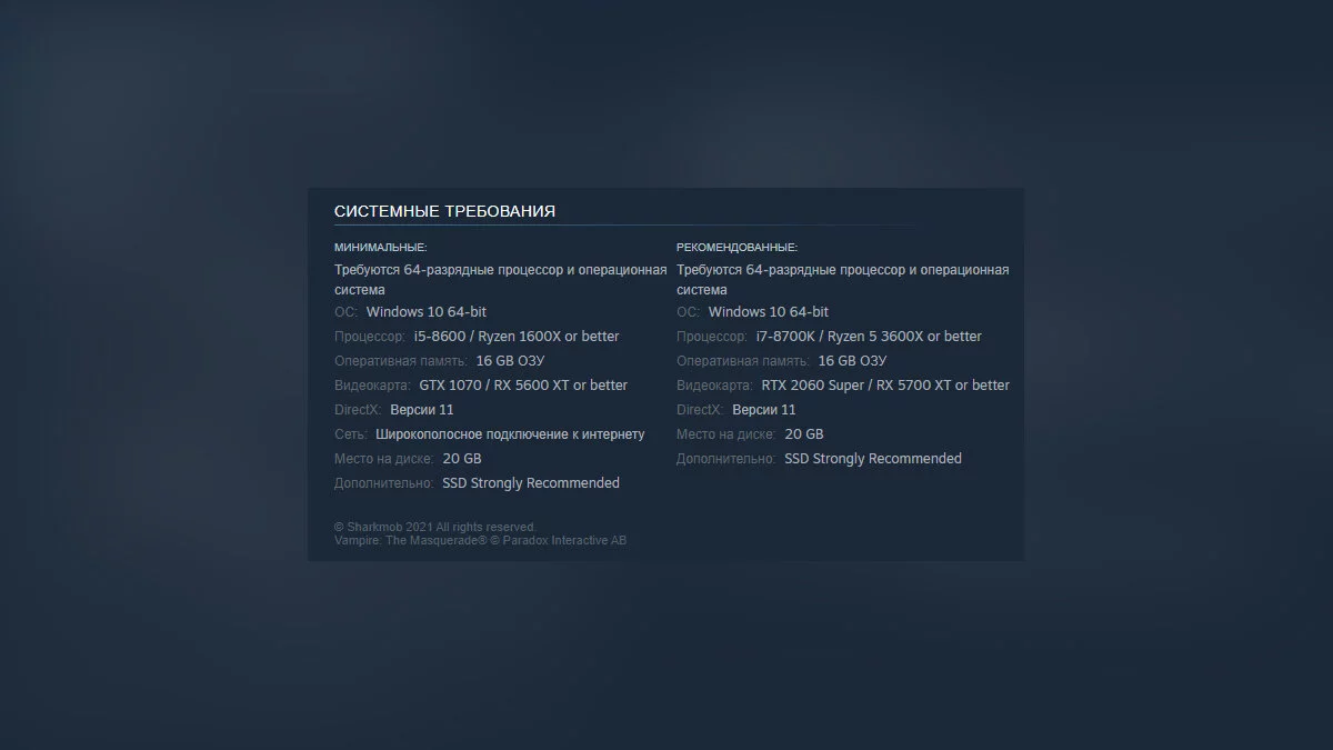 Студия Sharkmob опубликовала обновленные системные требования предстоящего экшена в формате «королевской битвы» Vampire: The Masquerade — Bloodhunt, которая будет распространяться по условно-бесплатной модели.