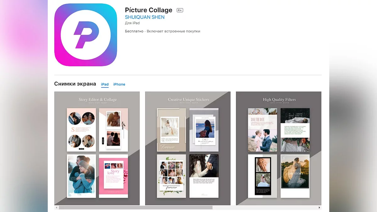 - Picture Collage — приложение для создания фотоколлажей (загрузить бесплатно);