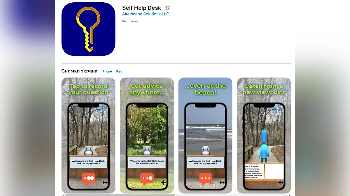 - Self Help Desk — приложение, позволяющее обсудить некоторые вопросы с виртуальной совой (загрузить бесплатно);