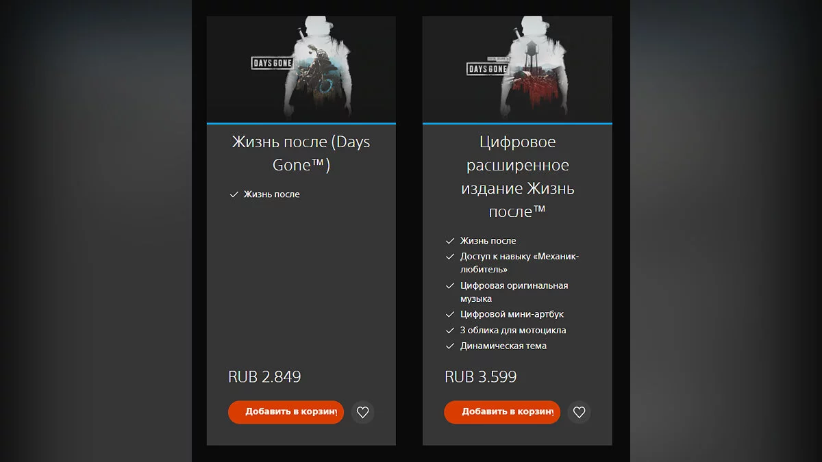 Речь идет о Days Gone и The Last of Us: Part 2. Обе игры раньше стоили по 4999 руб. Теперь стоимость каждой составляет по 2849 руб. Таким образом, цена снизилась сразу на 2150 руб.