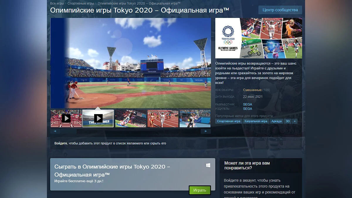 Скачать Olympic Games Tokyo 2020: The Official Video Game можно здесь (бесплатные выходные продлятся до 26 июля, 17:00 МСК).