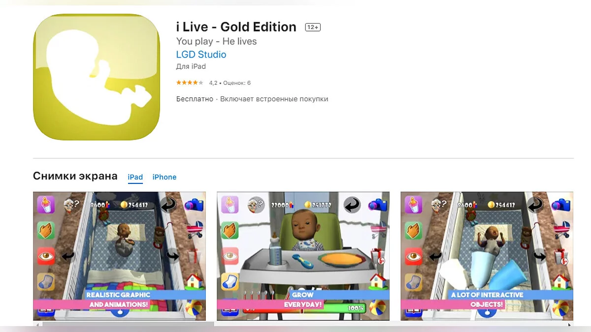 - i Live — Gold Edition — игра в духе тамагочи, только в качестве основного персонажа в ней выступает грудной ребенок (загрузить бесплатно).
