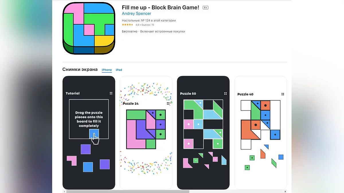- Fill me up — Block Brain Game! — головоломка, в которой нужно взаимодействовать с разными геометрическими фигурами (загрузить бесплатно);