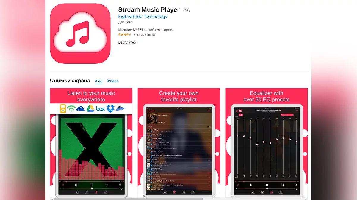 - Stream Music Player — проигрыватель с возможностью стриминга музыки (загрузить бесплатно);