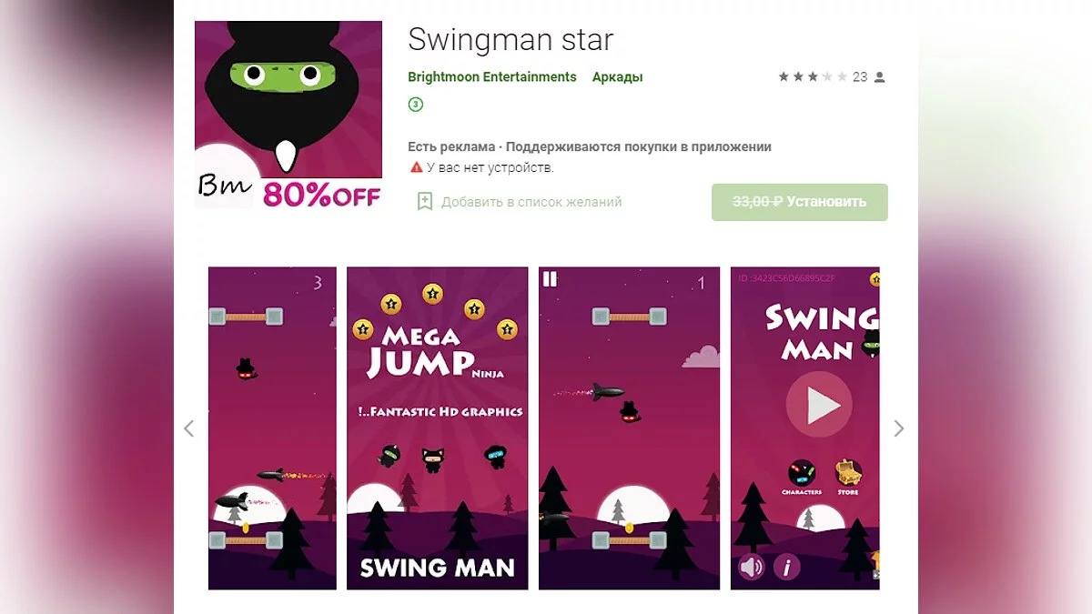 - Swingman star — 2D-игра, в которой нужно помочь персонажу-ниндзя правильно прыгать и избегать препятствий (загрузить бесплатно);