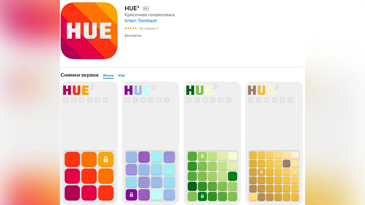 - HUE² — игра в стиле «Кубика Рубика», в которой нужно распределять цветные кубики по тем местам в градиенте, где они должны быть (загрузить бесплатно).