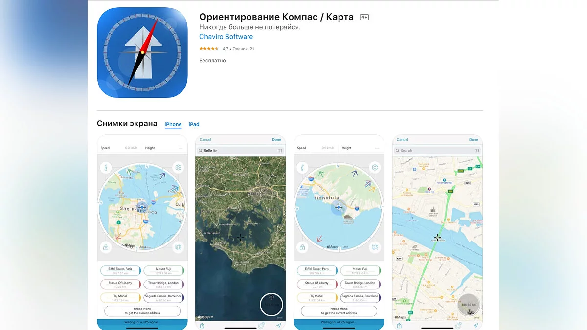 - «Ориентирование Компас / Карта» — приложение, которое не даст вам заблудиться (загрузить бесплатно);