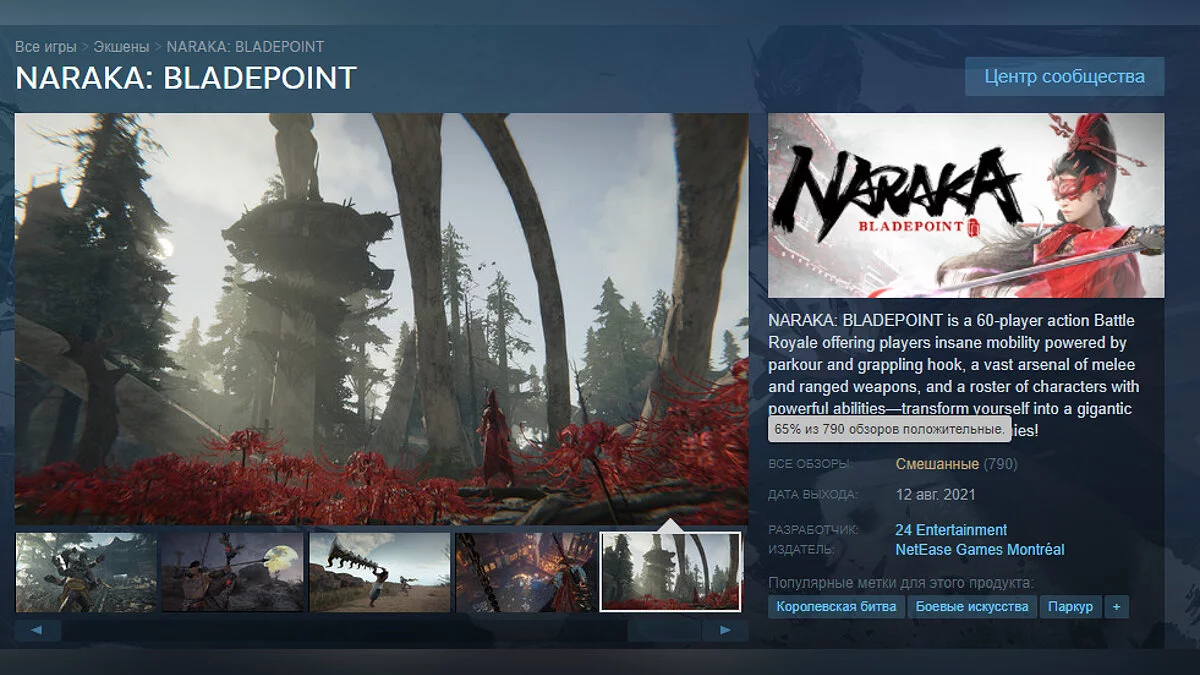Купить Naraka: Bladepoint можно в Steam за 1199 рублей.