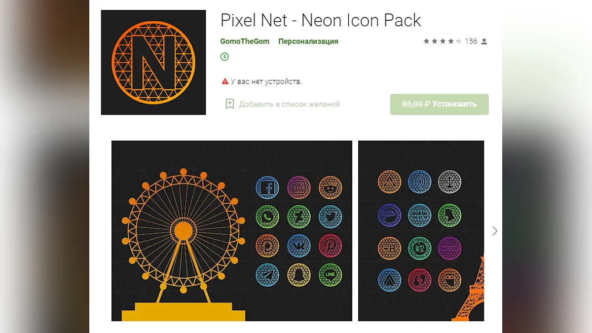 - Pixel Net — Neon Icon Pack — набор круглых минималистичных иконок для персонализации вашего Android-устройства (загрузить бесплатно);