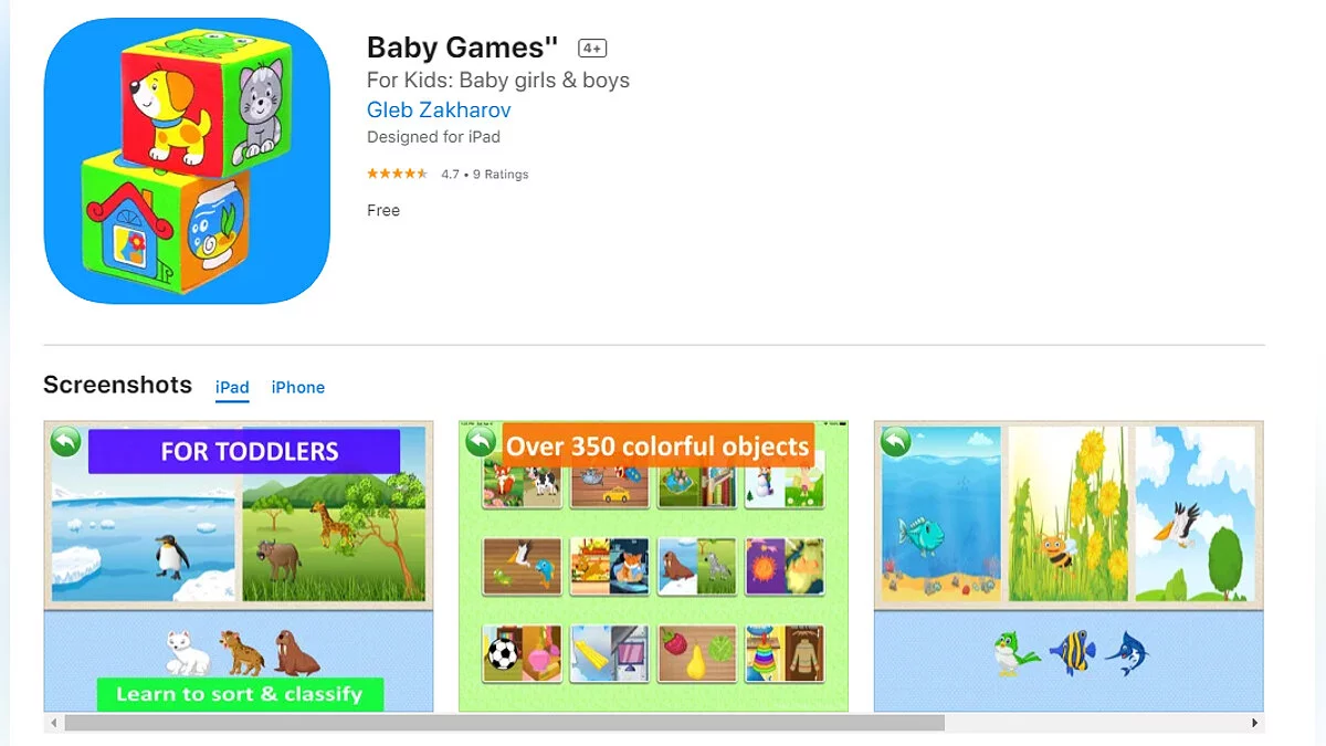 - Baby Games — набор обучающих игр для маленьких детей, которые помогут им в познавании окружающей среды (загрузить бесплатно);