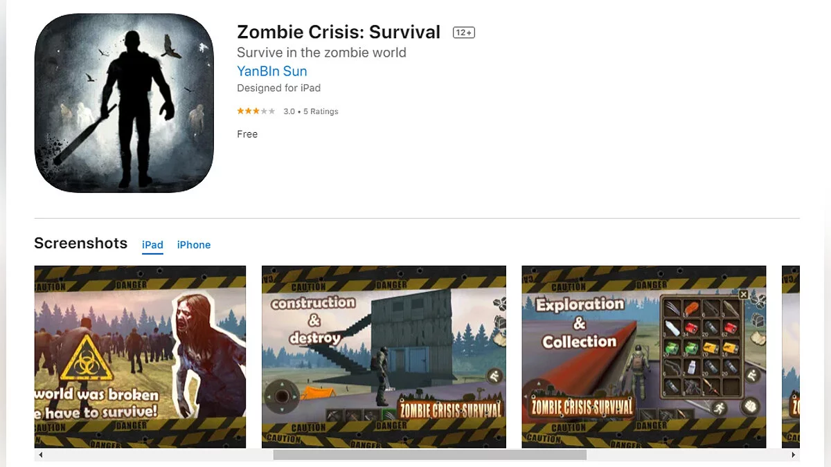 - Zombie Crisis: Survival — зомби-шутер на выживание, действие которого разворачивается в мире во время зомби-апокалипсиса. Главная цель — не дать себя съесть (загрузить бесплатно);