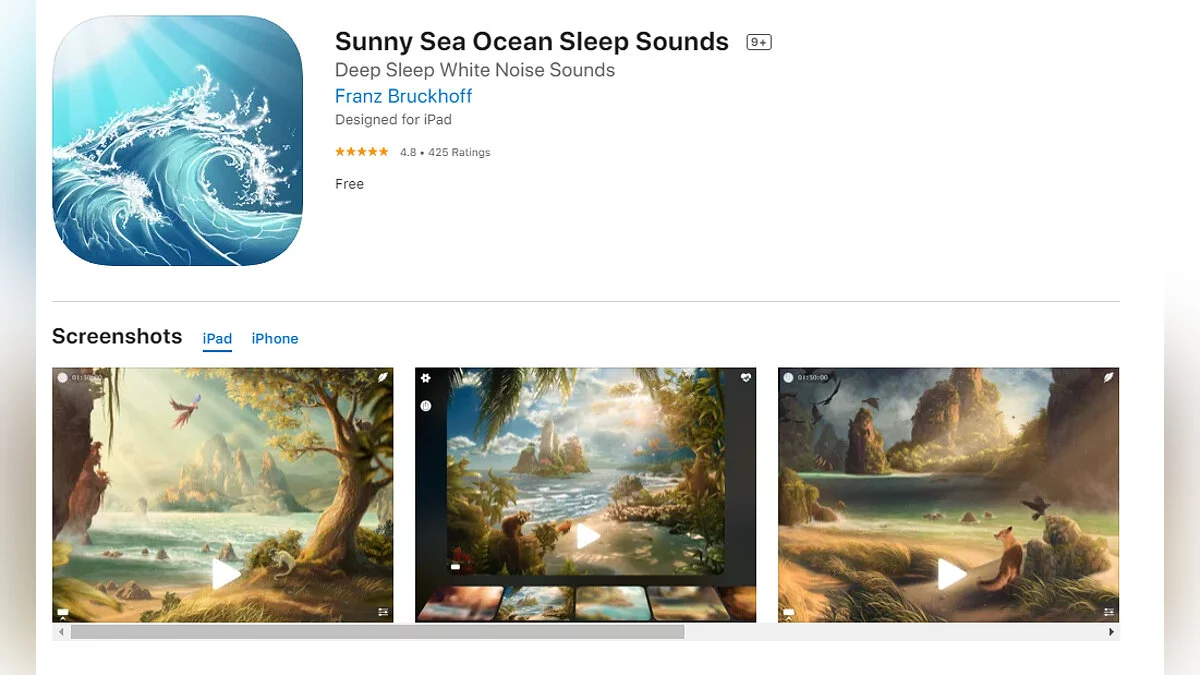 - Sunny Sea Ocean Sleep Sounds — приложение, которое поможет вам быстро и крепко уснуть. Для этого в нем используются различные успокаивающие звуки (загрузить бесплатно);