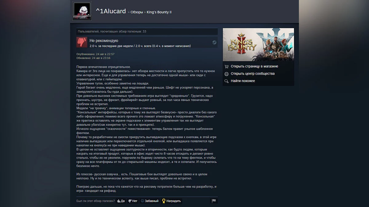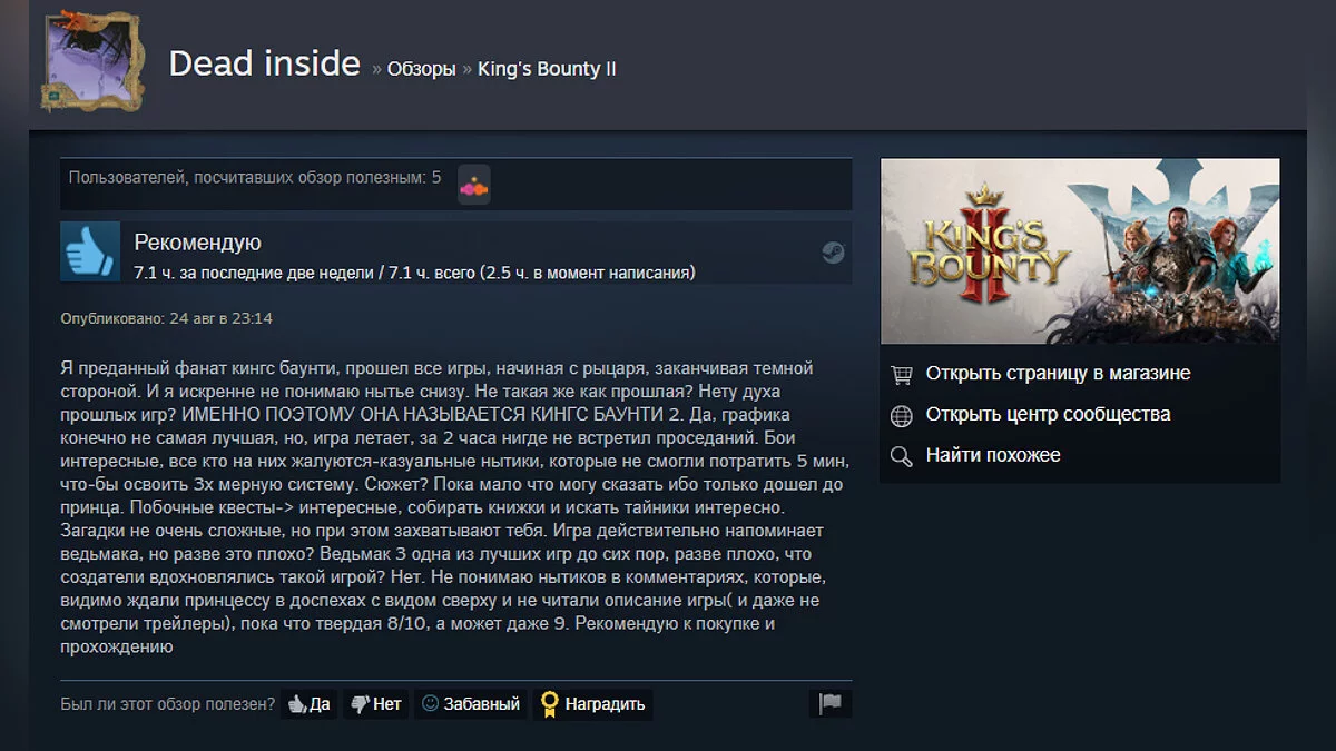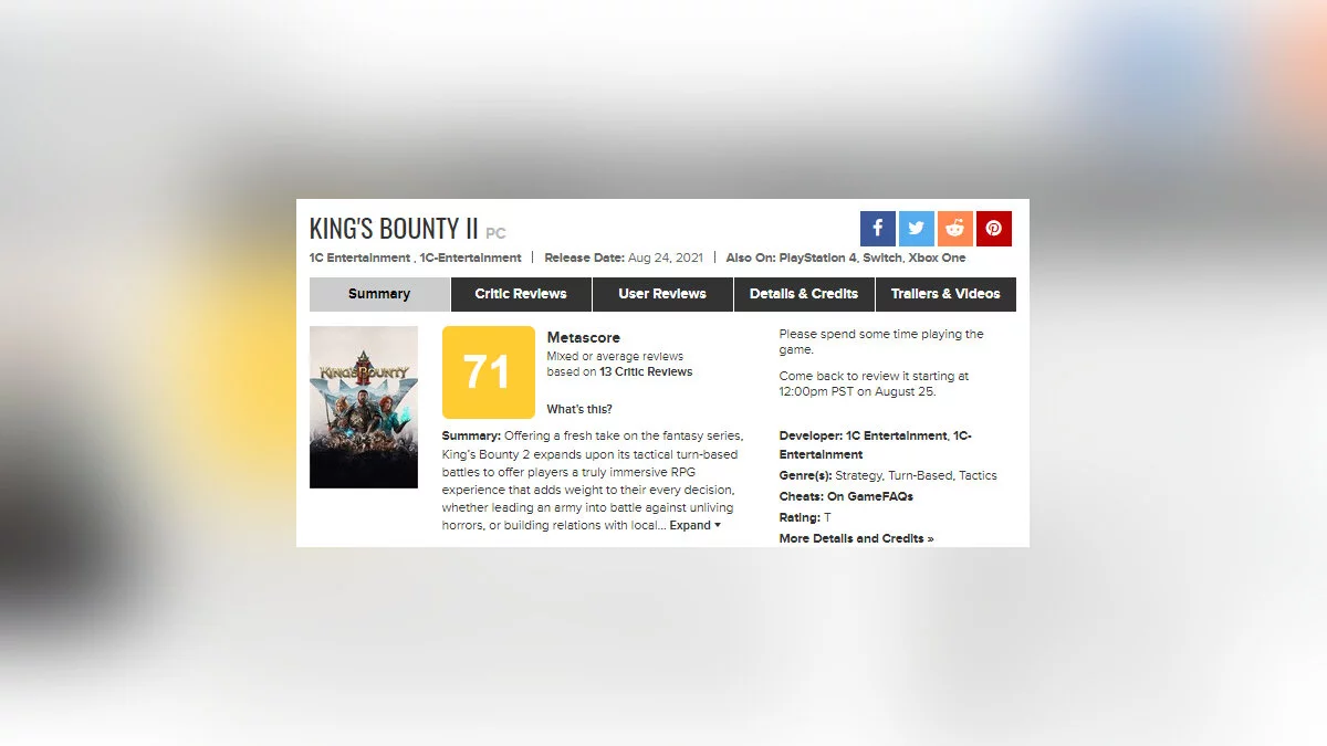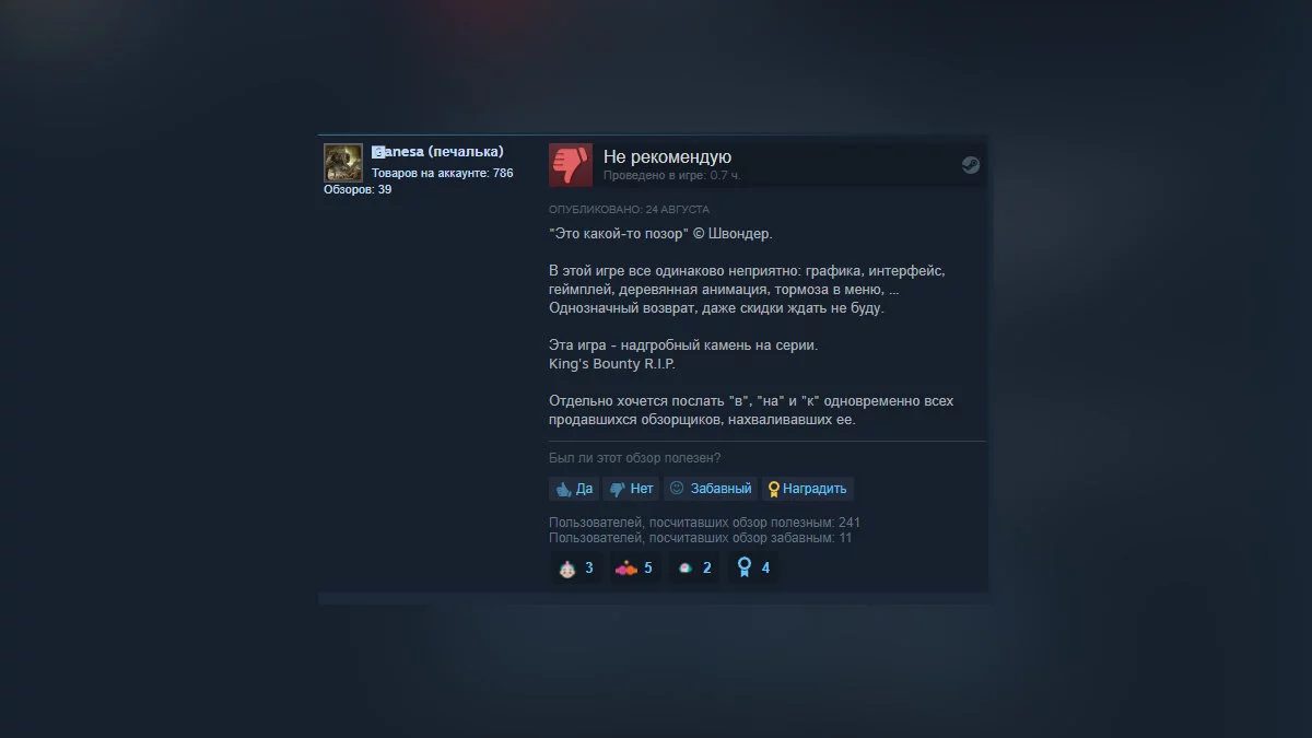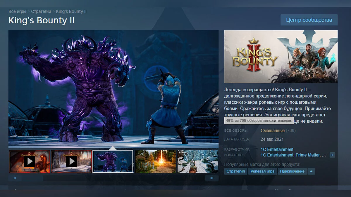 На момент написания новости, рейтинг King's Bounty 2 в Steam составляет 46% на основе 709 обзоров. На Metacritic оценка от прессы — 71 балл. С нашим обзором можете ознакомиться здесь.