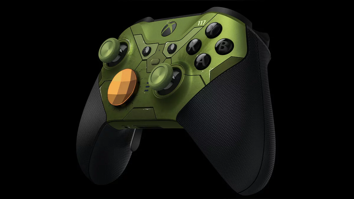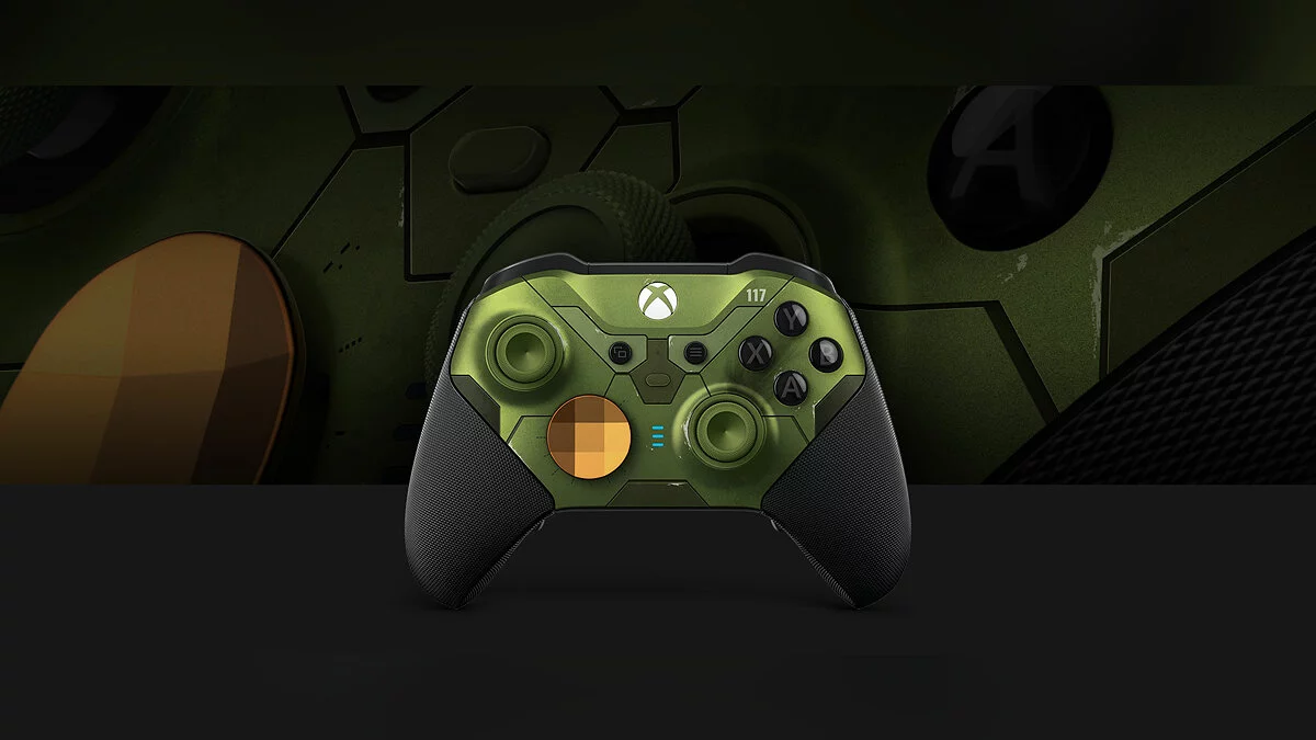 Корпус геймпада выполнен в зеленом цвете. Он поставляется с набором заменяемых компонентов, включая альтернативные мини-джойстики, лепестки и крестовину, а также специальным футляром с гербом ККОН (Космическое Командование Объединённых Наций). Всем покупателям обещают эксклюзивный брелок Halo Elite, который должен стать визитной карточкой для игроков в мультиплеере Halo Infinite.
