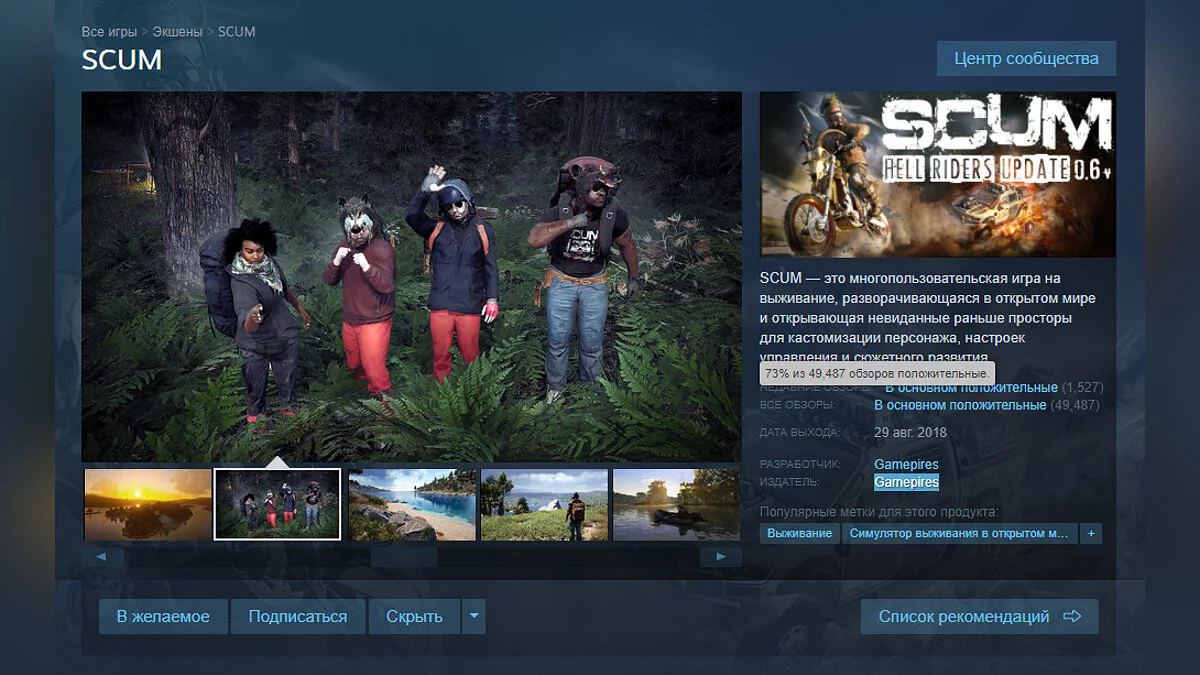 В Steam стала временно бесплатной игра под названием SCUM, которая представляет собой многопользовательский симулятор выживания с открытым миром, построенный на графическом движке Unreal Engine 4.