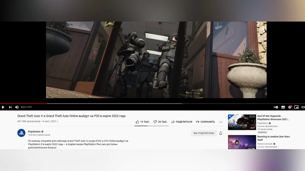 Примечательно, что вчерашний трейлер GTA 5 вызвал бурю критики со стороны игрового сообщества. На момент написания новости, дизайлки превышают лайки (20 тыс. против 13 тыс.).