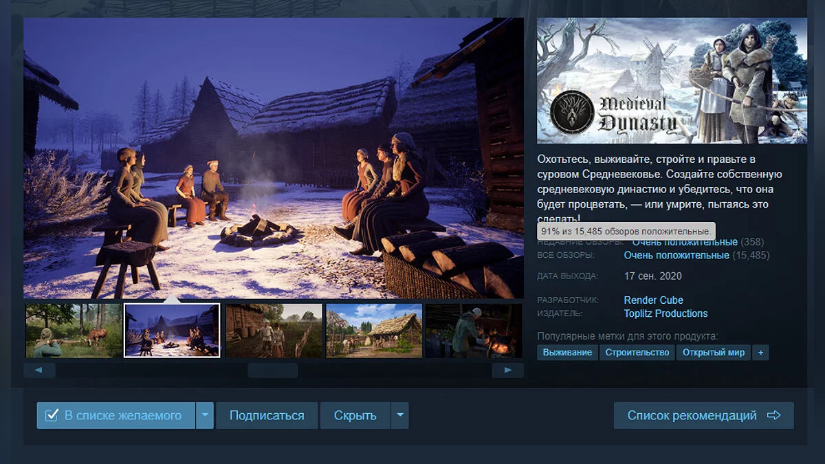 Купить Medieval Dynasty можно в Steam за 1499 рублей. Игра также доступна в GOG и Epic Games Store. С нашим обзором можете ознакомиться здесь.