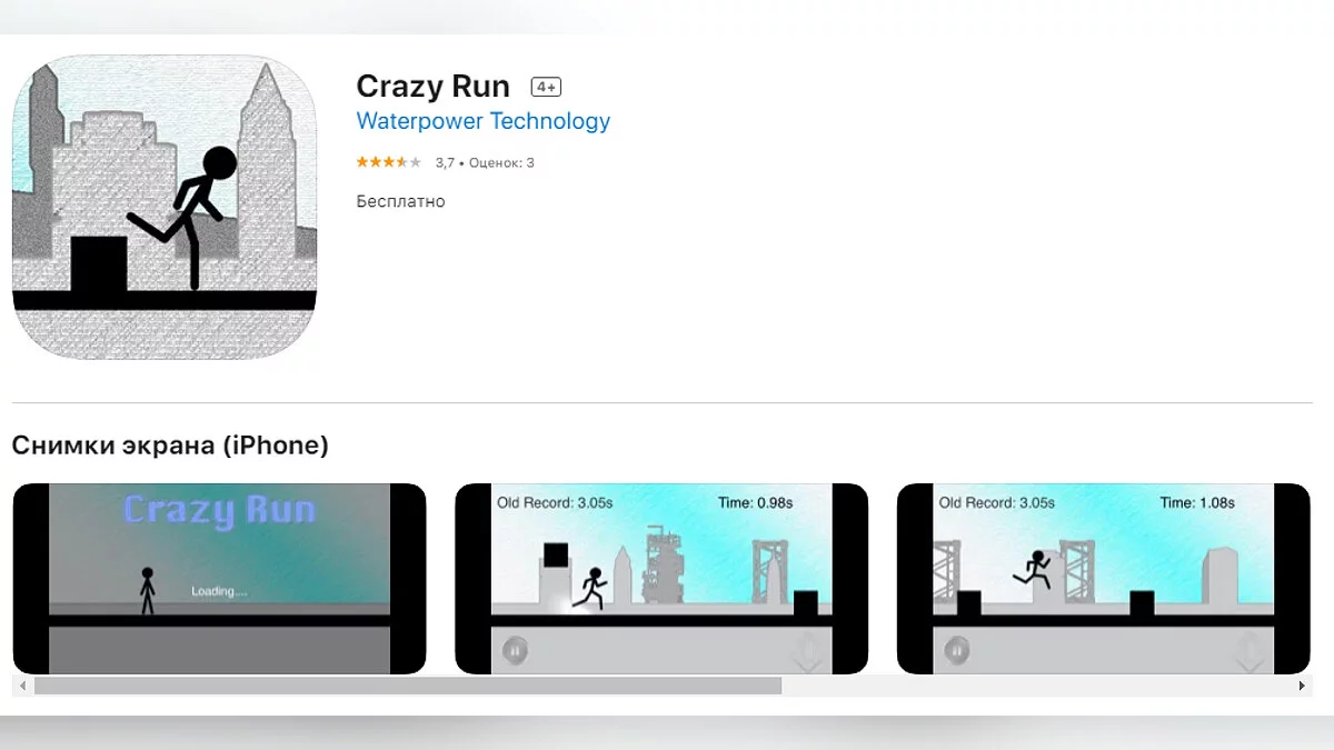 - Crazy Run — минималистичный раннер, в котором можно управлять персонажем всего одним пальцем (загрузить бесплатно);