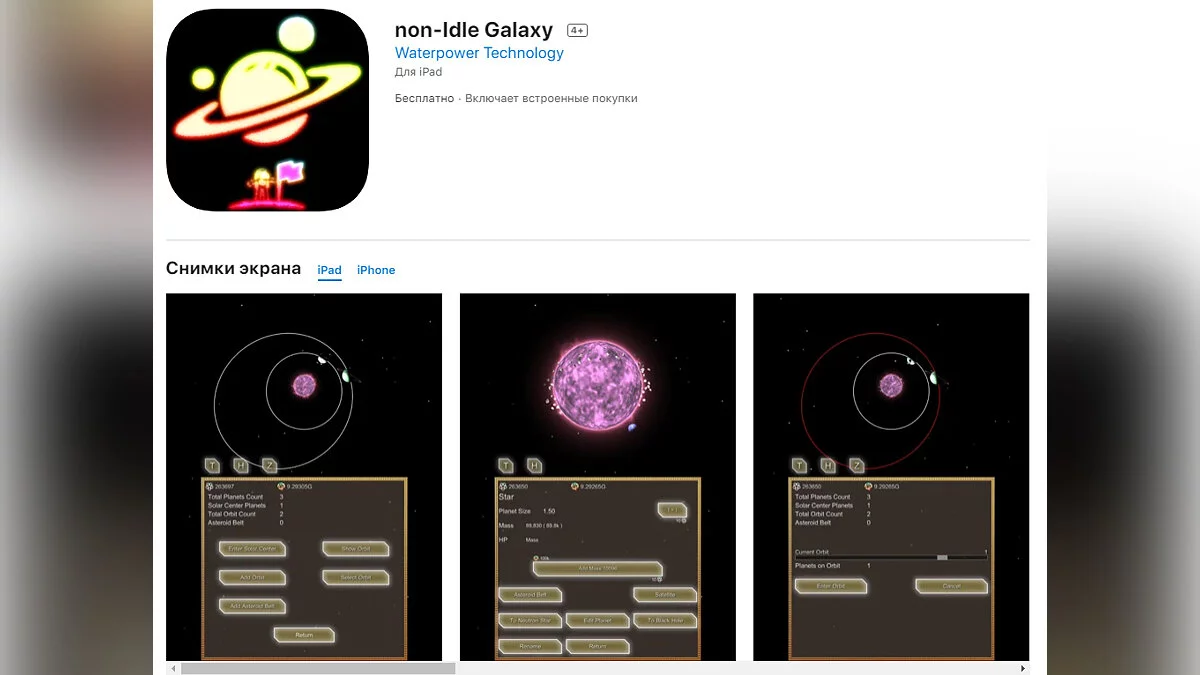 - non-Idle Galaxy — приложение, моделирующее звездные системы (загрузить бесплатно);