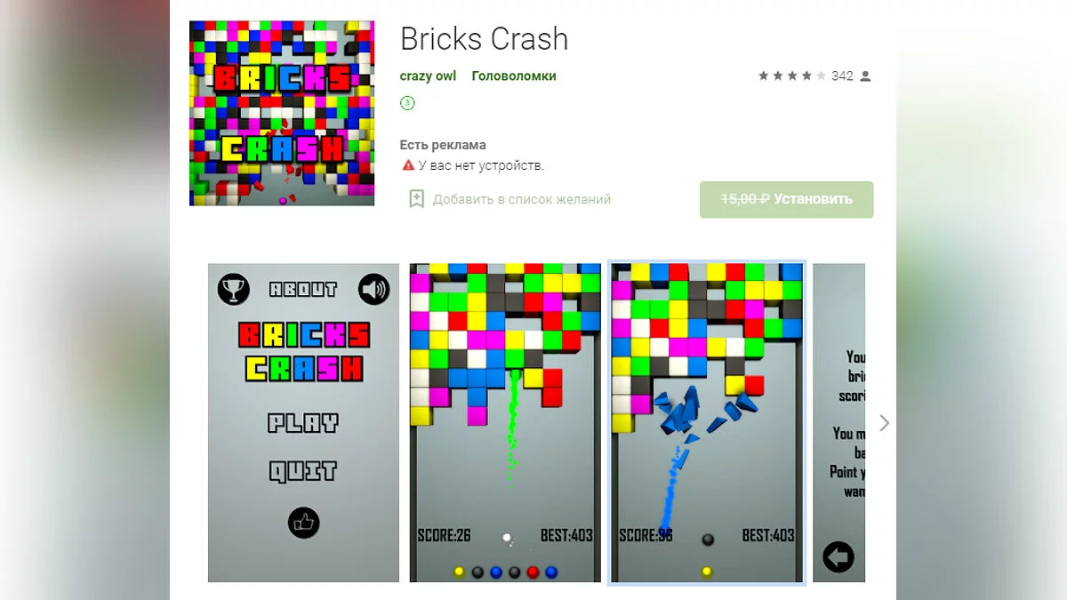 - Bricks Crash — игра, в которой нужно уничтожать квадраты, стреляя в них снарядами соответствующего цвета (загрузить бесплатно);