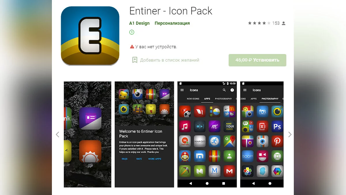 - Entiner — Icon Pack — набор альтернативных иконок для персонализации рабочего стола (загрузить бесплатно).